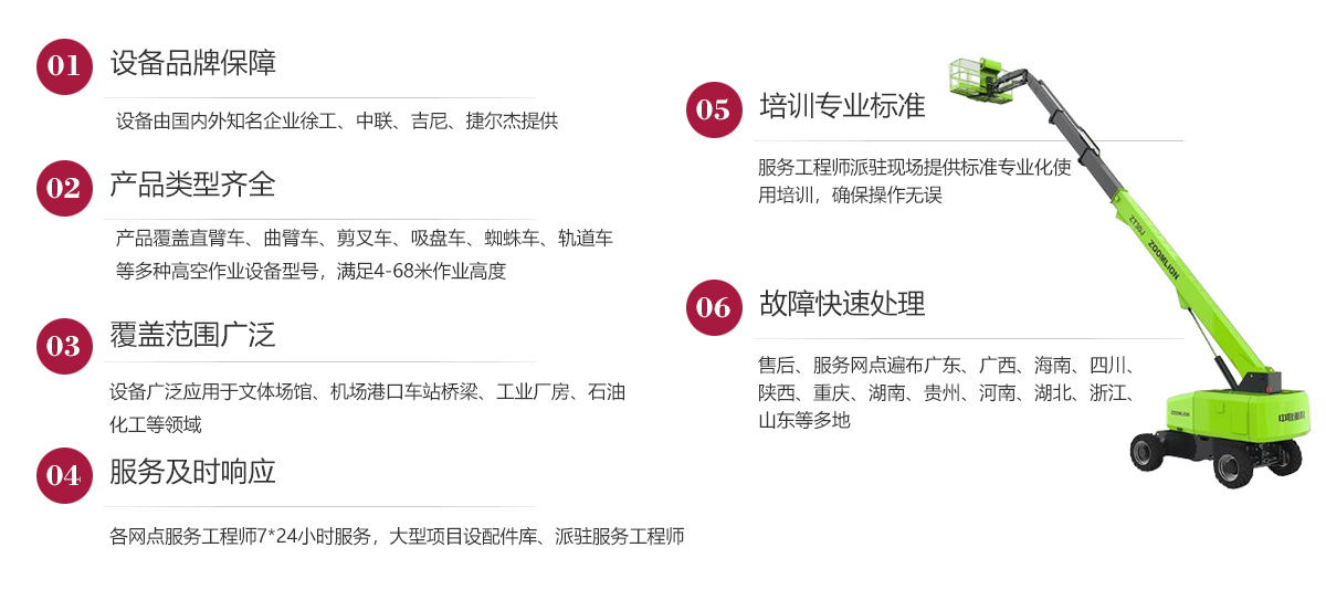 公司在發(fā)展歷程中堅(jiān)定實(shí)行大客戶(hù)戰(zhàn)略,致力于以?xún)?yōu)質(zhì)的服務(wù)打造公司的品牌和核心競(jìng)爭(zhēng)力,現(xiàn)已在廣東、廣西、海南、四川、陜西、湖南、重慶、河南、湖北、貴州等多地建立了完善的售后服務(wù)網(wǎng)點(diǎn),24小時(shí)為客戶(hù)排憂(yōu)解難。今后我們將結(jié)合市場(chǎng)需求,不斷創(chuàng)新業(yè)務(wù)模式、優(yōu)化設(shè)備結(jié)構(gòu)、加強(qiáng)運(yùn)營(yíng)管理、擴(kuò)大服務(wù)網(wǎng)點(diǎn)、提升服務(wù)水平,形成以設(shè)備租賃、銷(xiāo)售、二手設(shè)備交易等全方位一站式的全面服務(wù)體系,用高標(biāo)準(zhǔn)高質(zhì)量的服務(wù)讓客戶(hù)在和公司合作的過(guò)程中實(shí)實(shí)在在感受到省心、省力、省錢(qián)的體驗(yàn),在客戶(hù)心目中樹(shù)立“家鋒”的品牌形象。