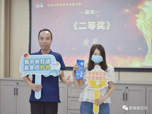 為宣導家鋒的企業文化,增強員工歸屬感,體現公司人性化關懷,公司組織了中秋線上猜燈謎的活動。本次活動氣氛熱烈,各部門同事積極參與,共有一百多名員工參賽;公司總部于9月8日舉辦了頒獎儀式,現場出席的嘉賓有總經理譚忠先生、副總經理秦文先生、各部門代表以及線上的外區同事們。