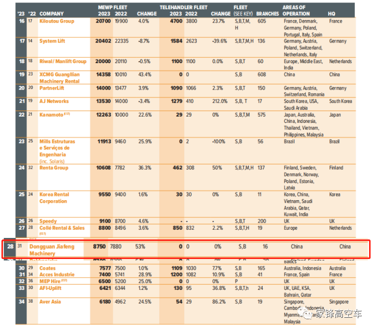 日前,國際著名的工程機械信息提供商—英國KHL集團發布了2023年“全球高空作業機械租賃50強排行榜”。東莞家鋒憑借穩健高質量的發展再次成功入榜,名列全球第28位,較去年提升3位,全球排名再度升級!